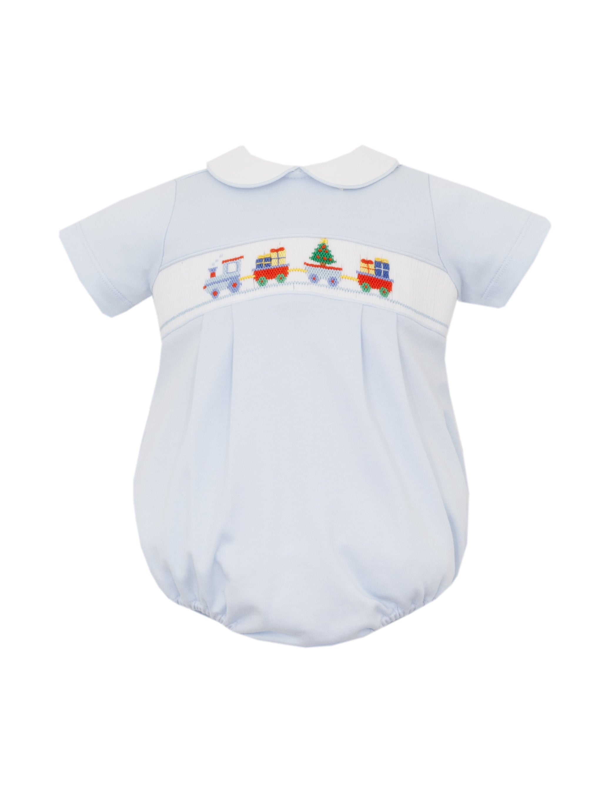 Christmas Train Light Blue Knit Boy Bubble