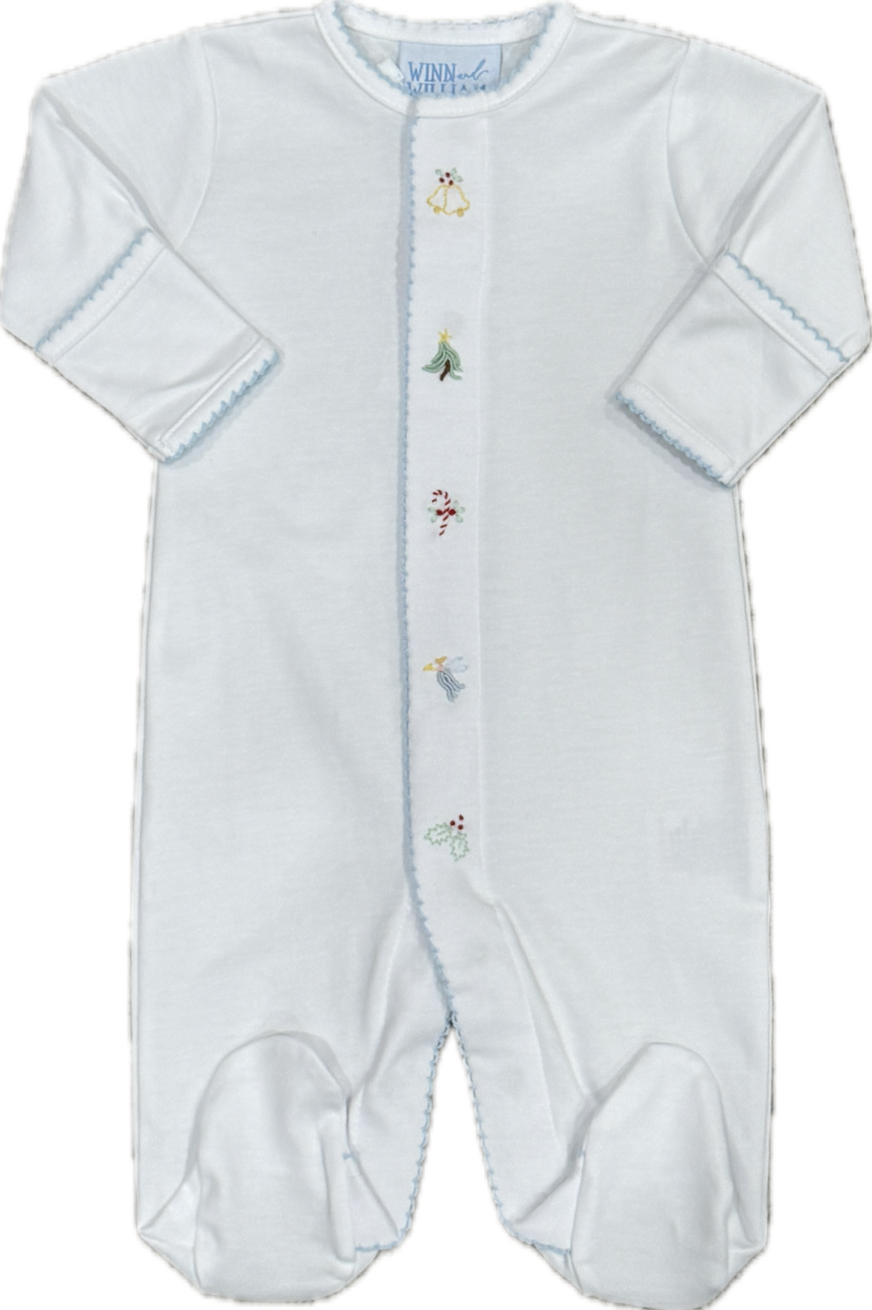 Soft 100% cotton sleeper with a baby blue picot trim