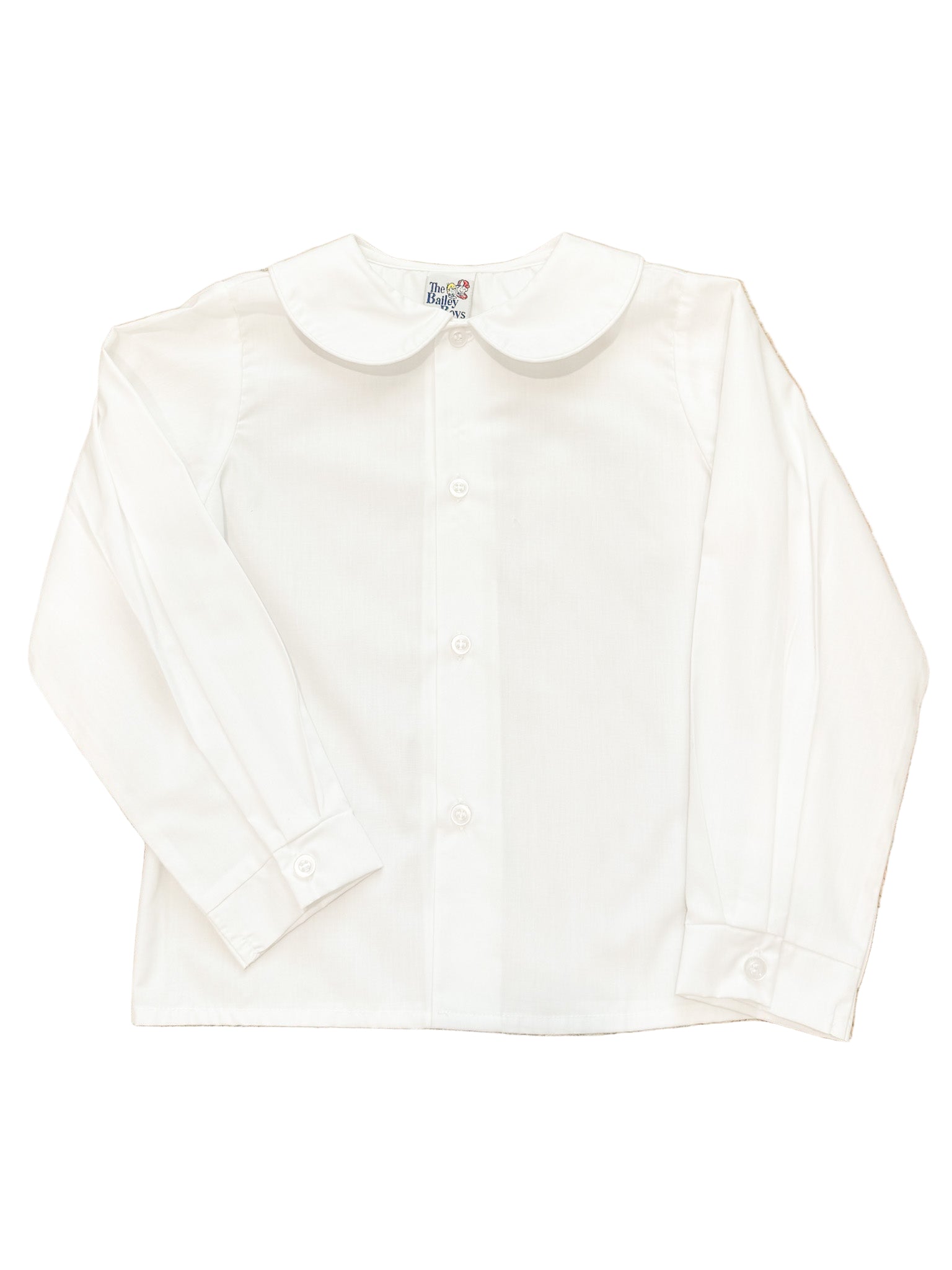 Dress your boy in enduring style with our White Boys Long Sleeve Piped Shirt. Its unrivaled Peter Pan collar and crisp piping detail capture sophistication and style. Button-down for easy dressing, and breathable soft fabric for comfort that lasts all day. Ideal to layer under john-johns or wear with trousers, it's a special occasion and everyday smartness wardrobe favorite.