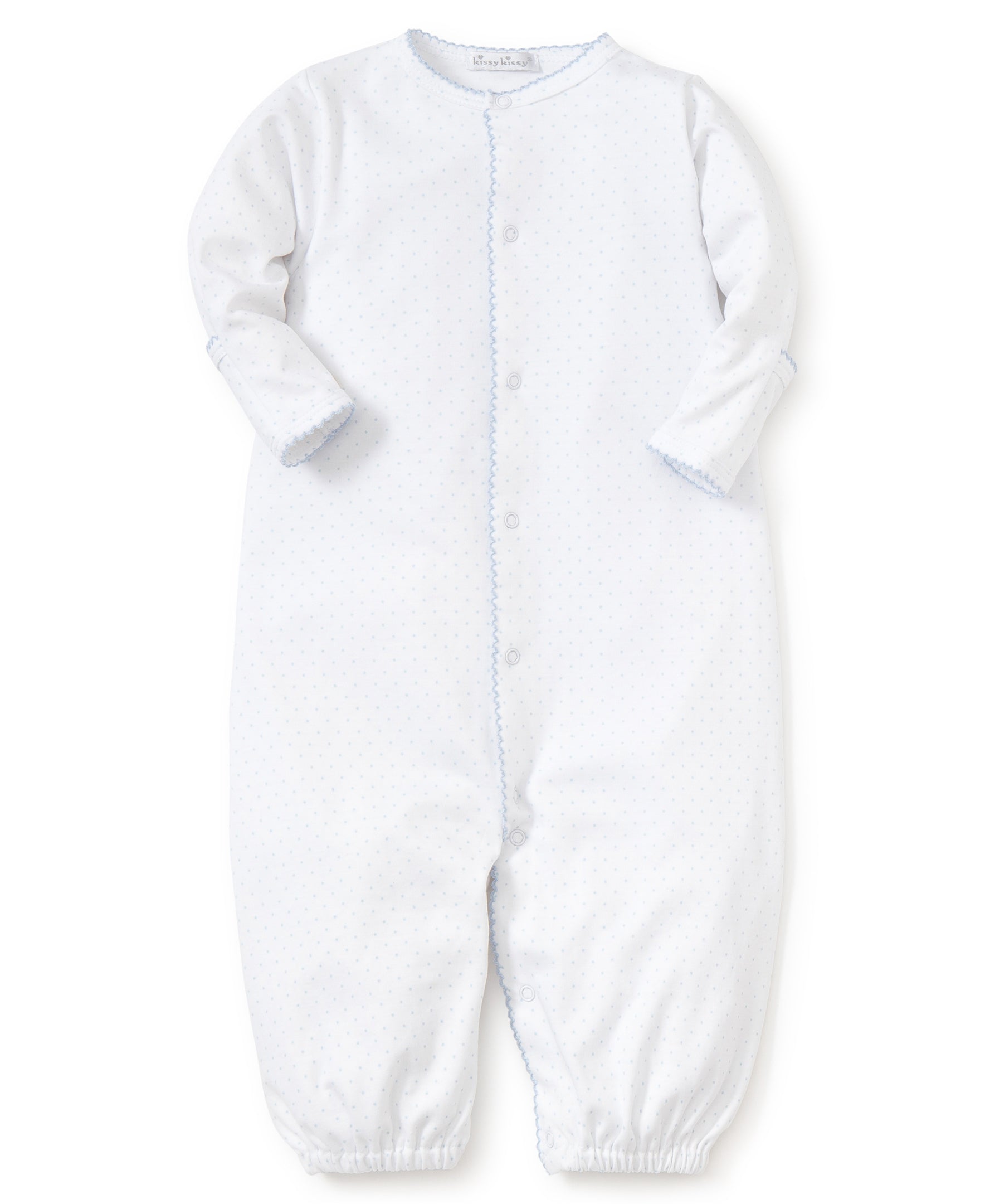 Our cozy converter gown features an allover dot print, and is made from 100% Pima cotton for the ultimade indulgence again baby's skin. Featuring snaps on legs for easy conversion to playsuit