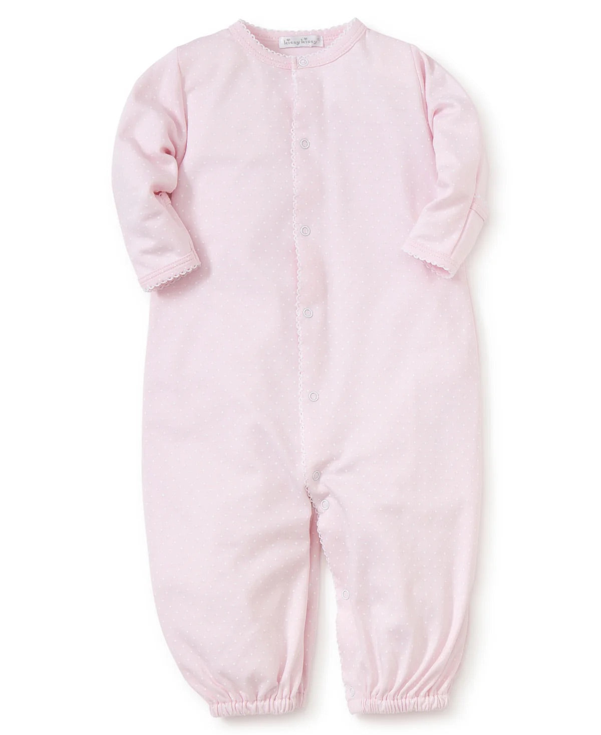 Our cozy converter gown features an allover dot print, and is made from 100% Pima cotton for the ultimade indulgence again baby's skin. Featuring snaps on legs for easy conversion to playsuit