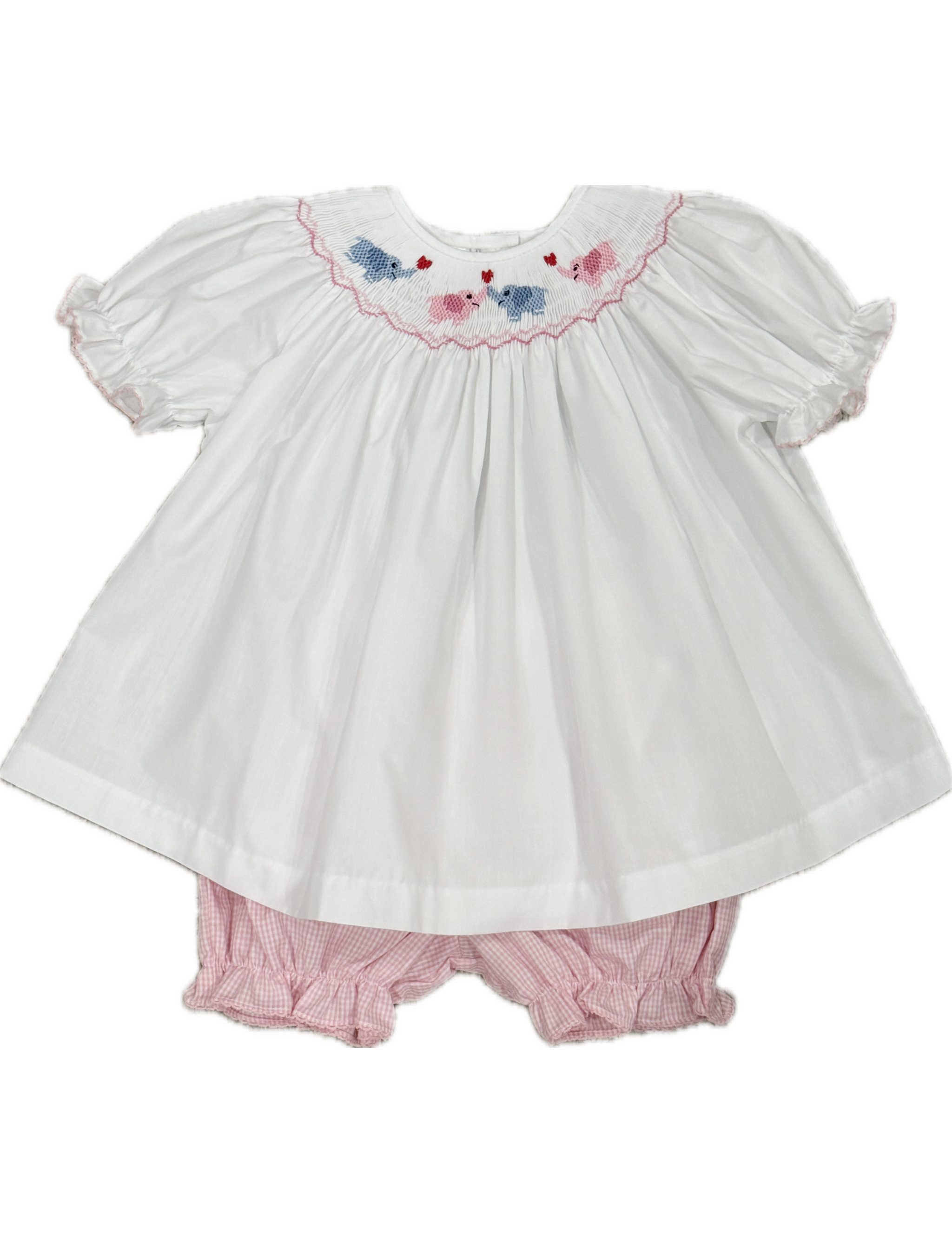 Smocked bloomer set with classic Southern charm and timeless detailing.