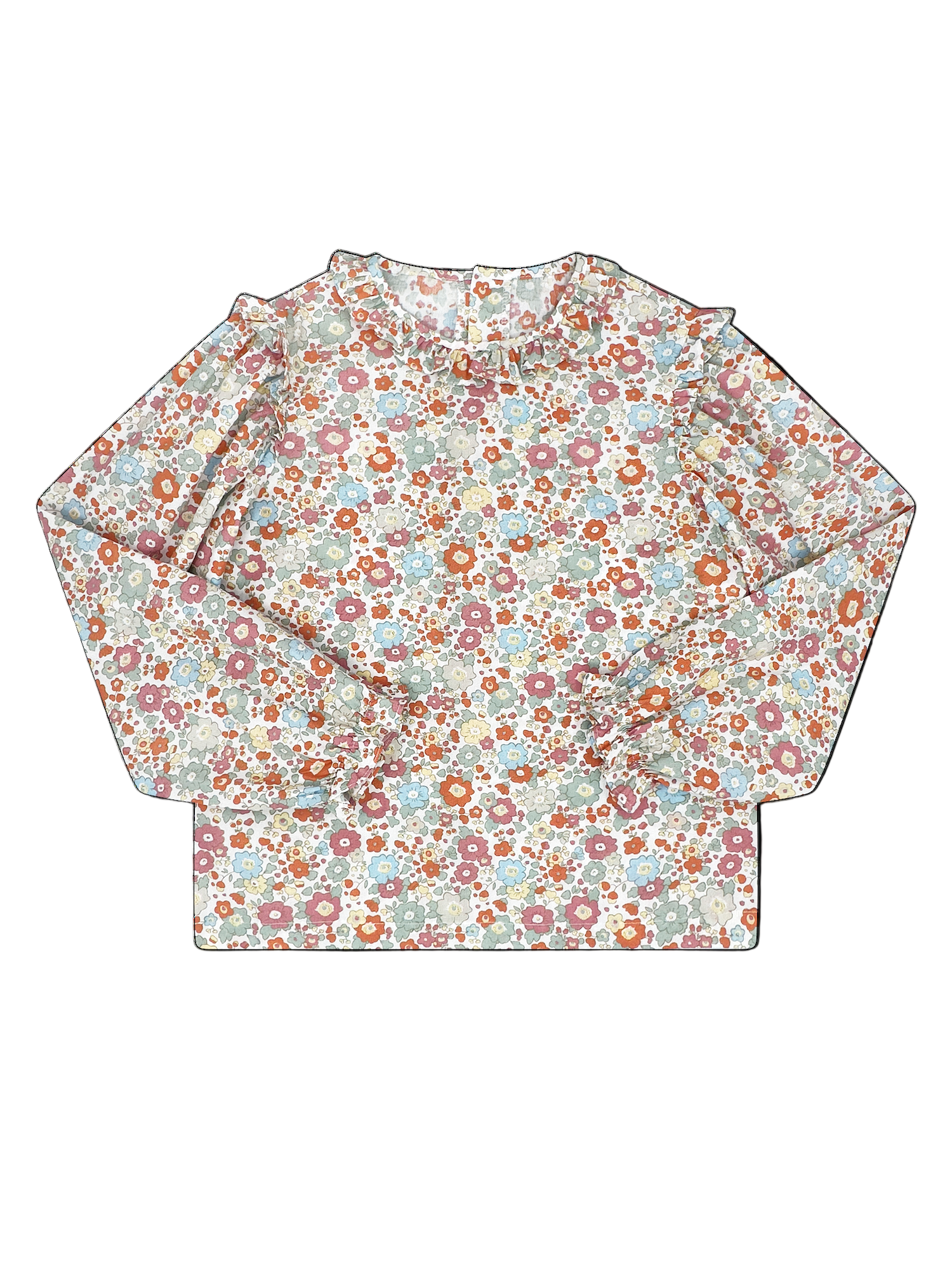 Bring a touch of floral elegance to your tween's wardrobe with the Evelyn Long Sleeve Blouse in Whimsy Blooms. This charming blouse combines delicate ruffles with a stylish silhouette, making it a perfect choice for any occasion.