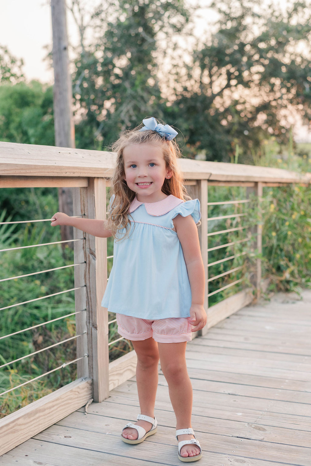Genevieve Banded Short Set Coral Stripe Light Blue PRE-ORDER