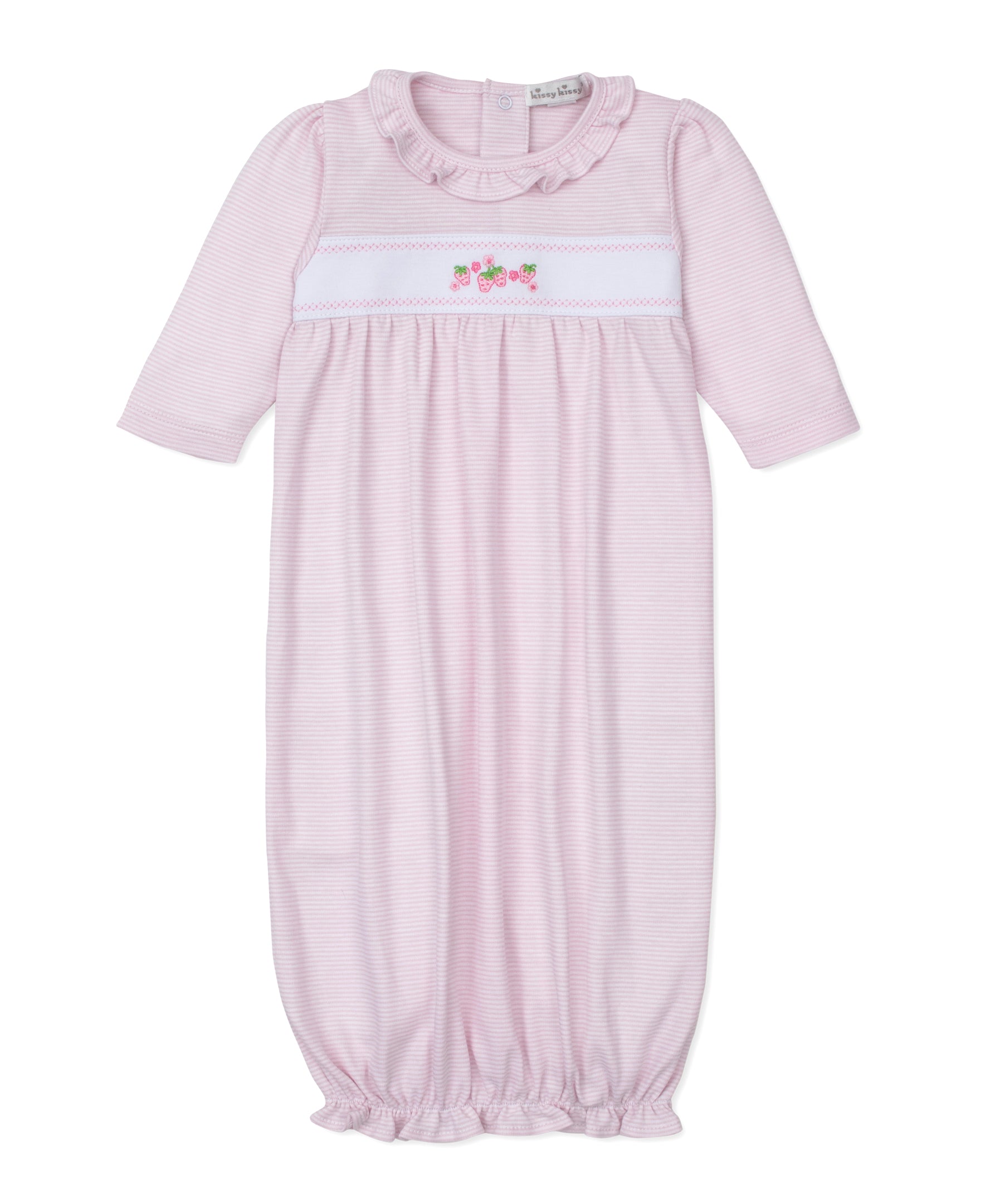Classic Treasures Pink Stripe Sack with Embroidered Strawberries