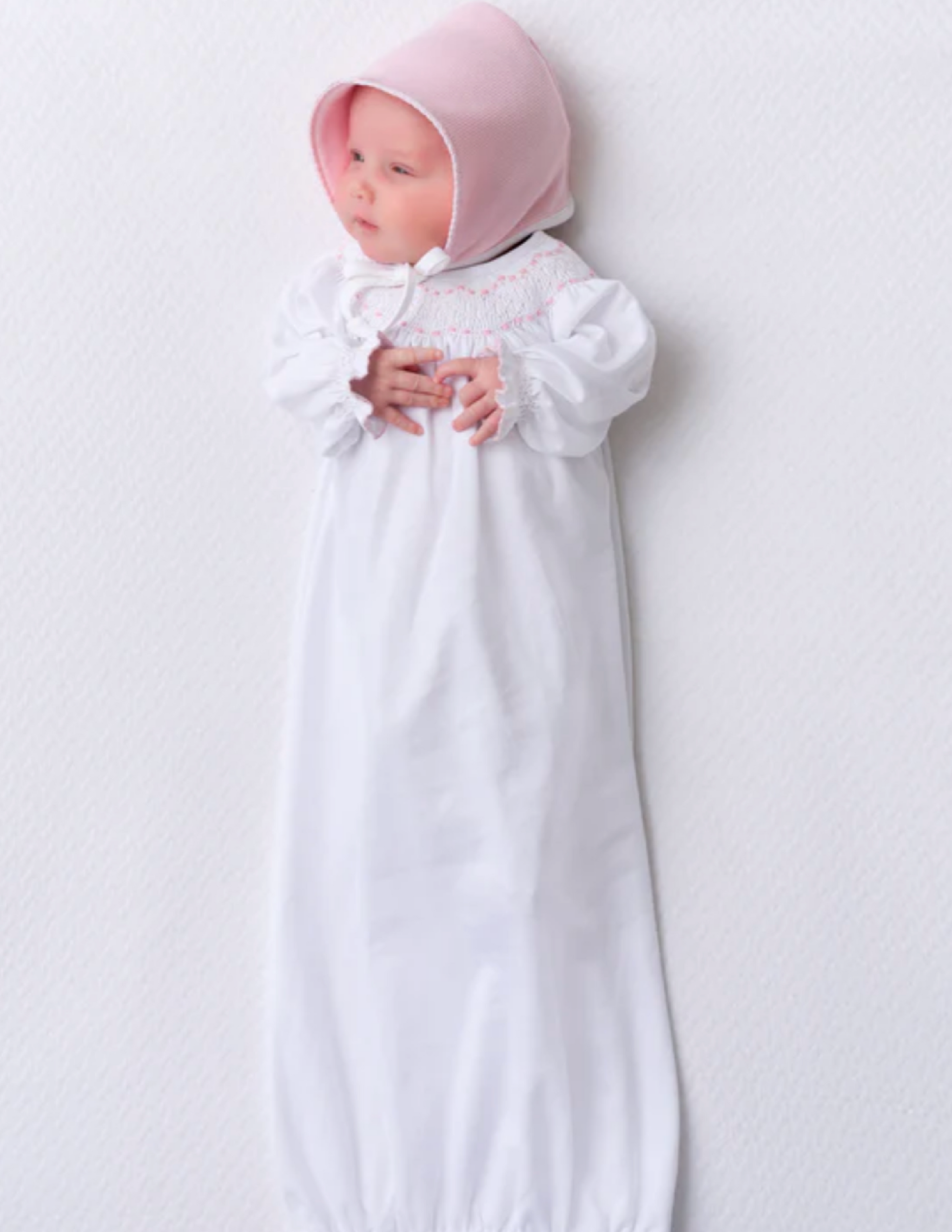 Sweetly Smocked Greeting Gown Worth Avenue White/Palm Beach Pink