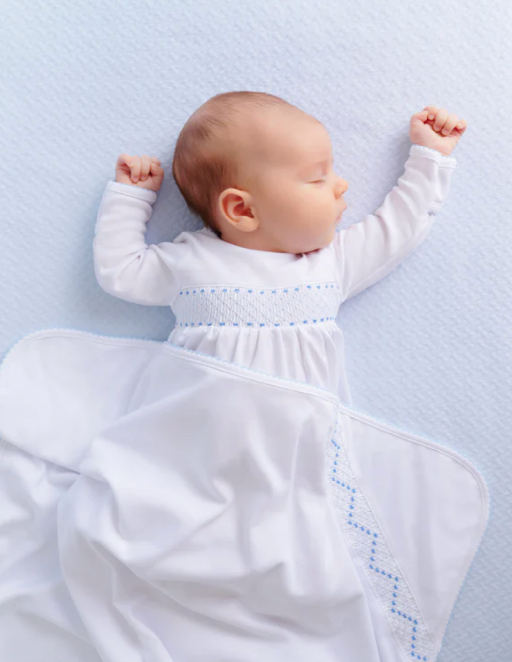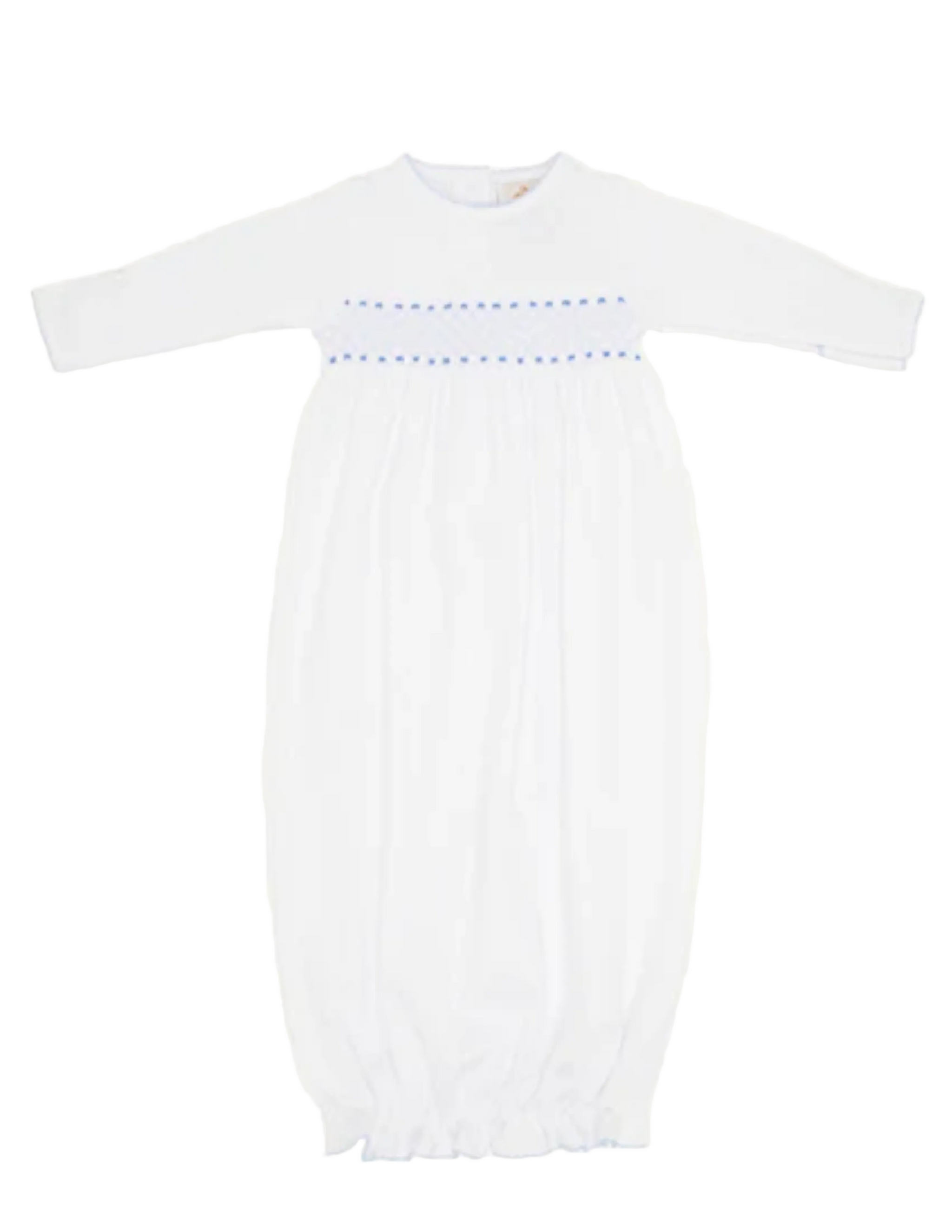 Sweetly Smocked Greeting Gown Worth Avenue White/Buckhead Blue